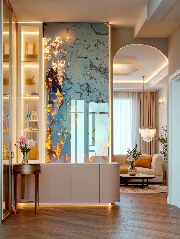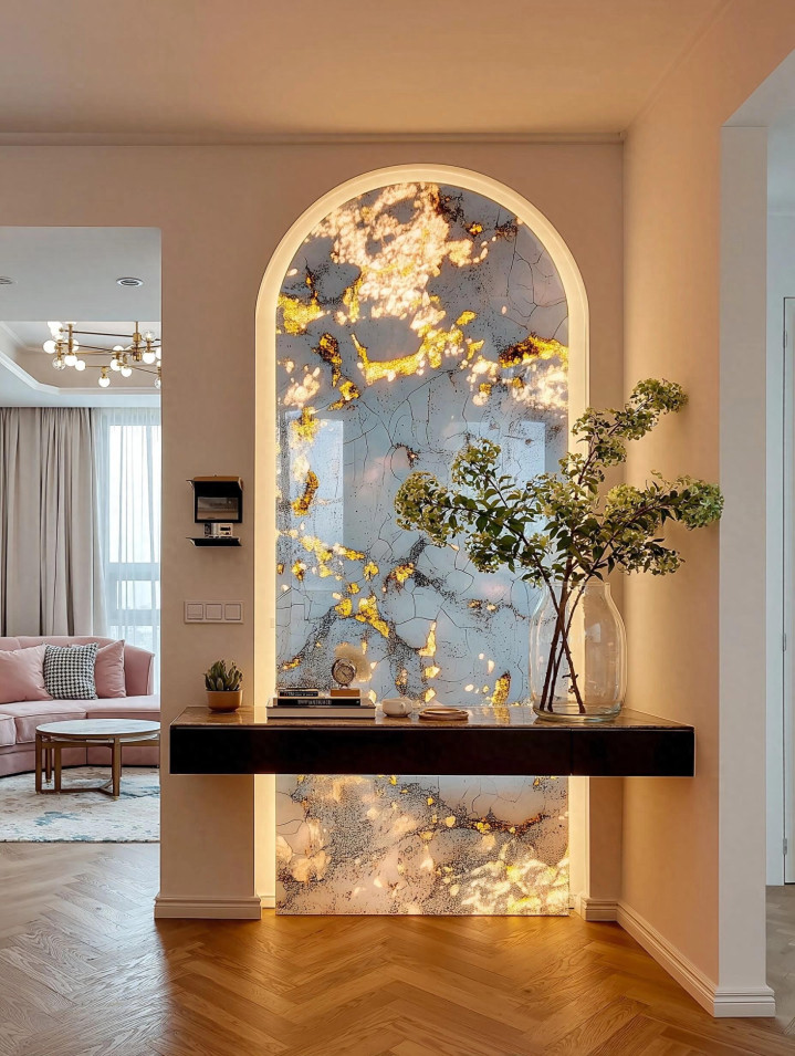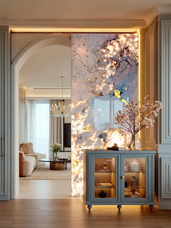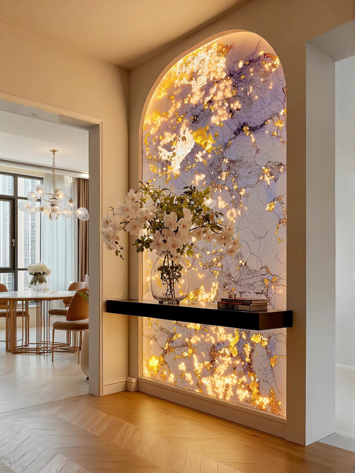 > 标准奢华入户布景墙的善良, 阳光照进来才懂 的高等感满满快意。