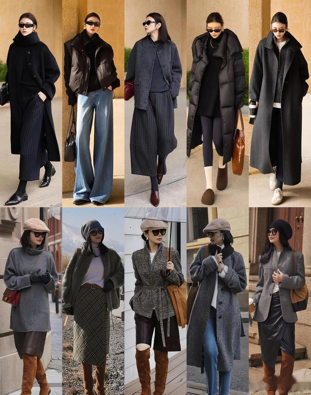 把昨年黑大衣翻出来,石墨灰领巾一搭,金属耳饰极少,照样能发‘当天穿搭’。