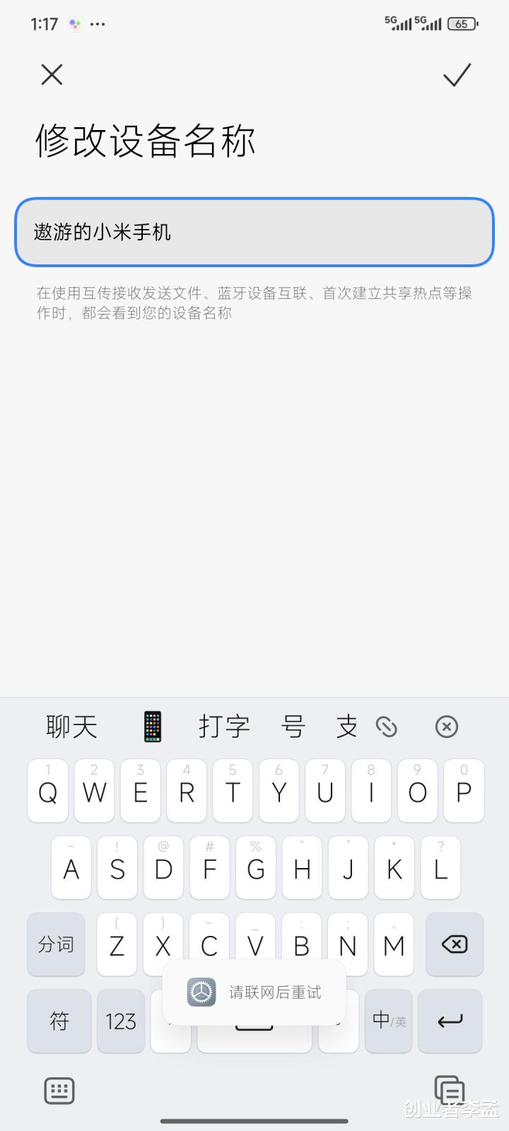 看到了这个问题,我用我的小米手机测试了下,关掉WiFi关掉数据线,然后大开蓝牙修改的时分,实在出现了“请联网后重试”