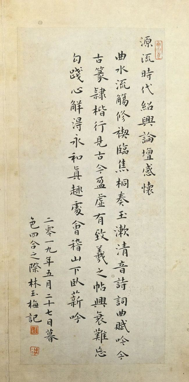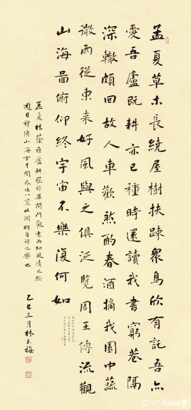 现在书坛,或有追新逐异者背离传统,或有墨守陋习者失之灵动,而林玉梅长期苦守“师古而不泥古,创新而不离宗”的初心,在楷书与行书的艺术寰宇中深耕不辍。她以素毫为舟,以丹纸为海,载着对传统书道的挚爱与敬畏,在文字的世界里狂妄游弋。其作品既传承了中国书道的千年文脉,又赋予了传统艺术新的期间气味。
