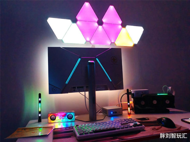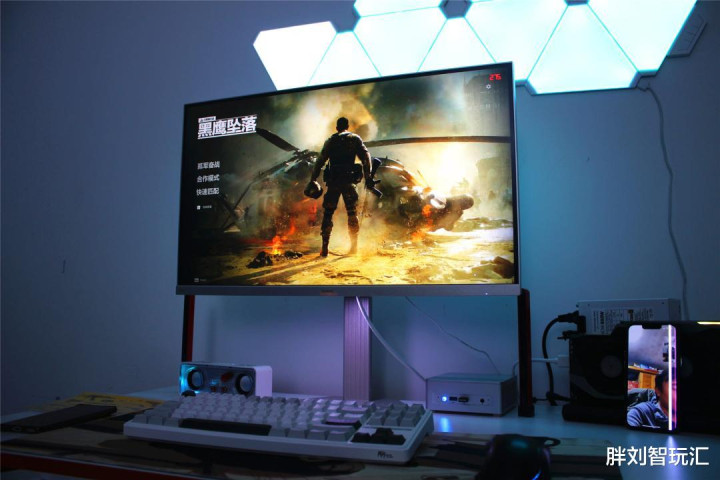 荫藏式耳机挂架是点睛之笔,闲居挂电竞耳机不占空间,取用方便;屏下红外感应小夜灯更是 “熬夜党福音”,靠近屏幕下方挥手即开,柔柔光辉刚好照亮键盘区域,无需荒芜开台灯,既实用又不夺目。这种 “颜值与实用兼顾” 的盘算,在同价位居品中实属荒野。