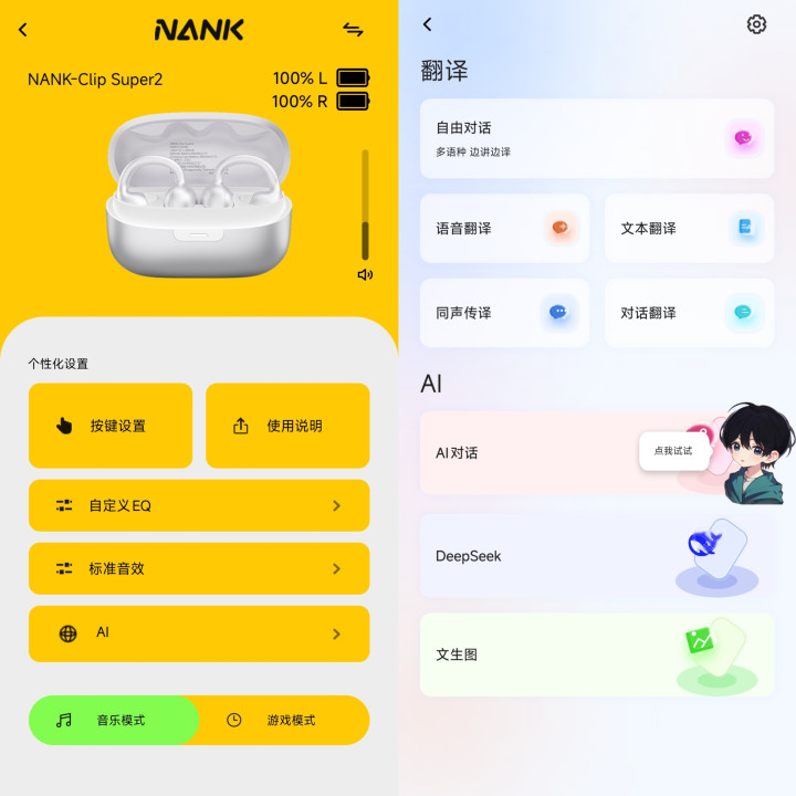 当下AI的密切融入浅显,在粘性最大的耳机上更有助于民风的养成,NANK南卡 Clip Super2集成讯飞、DeepSeek等多模态AI智能系统,会聚AI翻译、 AI对话、AI语音助手、AI生成践诺、AI深度搜索等才略。无论是跨国一样、学习追随、商务纪录,已经活命场景,你念念 要的智能功能,一副耳机全包办,果真已毕听歌与智能的会通体验。